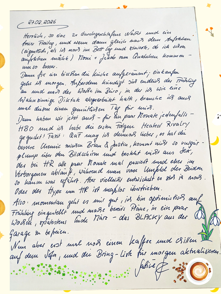 Und mit der Warterei ist Heated Rivalry ja in bester Gesellschaft: Ich warte auf das Heartstopper Movie, den 2. Teil von Red, White & Royal Blue – Wedding; ich warte auf den Frühling und permanent auf das nächste Wochenende.