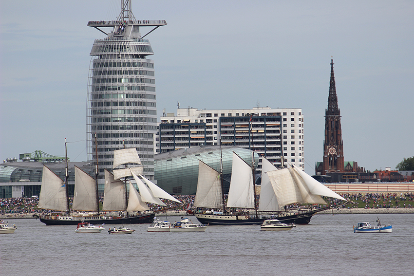So ein freier (da Überstundenabbau aus dem Nachmittagsbüro) Mitwochnachmittag hat was, und um so mehr, wenn er mit lauter Segelschiffen gefüllt ist, die auf der Weser in den Bremerhavener Hafen schippern. Es ist SAIL-Jahr, und ich wollte dieses Jahr auch schauen. Mit mir schauten Tausende an beiden Seiten der Weser, aber ich fand mein Plätzchen, nachdem ich superpünktlich aus dem Vormittagsbüro entwischen konnte und wie eine Verrückte mit dem Radel nach Blexen gedüst bin. Ich hoffe, ich habe nachher geruchstechnisch niemanden belästigt. LOL