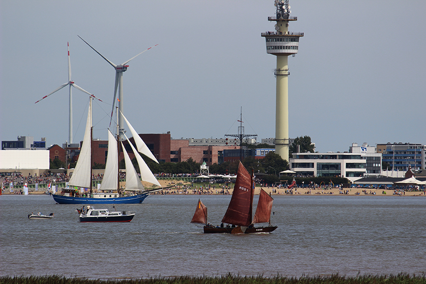 So ein freier (da Überstundenabbau aus dem Nachmittagsbüro) Mitwochnachmittag hat was, und um so mehr, wenn er mit lauter Segelschiffen gefüllt ist, die auf der Weser in den Bremerhavener Hafen schippern. Es ist SAIL-Jahr, und ich wollte dieses Jahr auch schauen. Mit mir schauten Tausende an beiden Seiten der Weser, aber ich fand mein Plätzchen, nachdem ich superpünktlich aus dem Vormittagsbüro entwischen konnte und wie eine Verrückte mit dem Radel nach Blexen gedüst bin. Ich hoffe, ich habe nachher geruchstechnisch niemanden belästigt. LOL